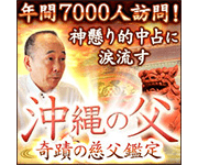 【完全無料で奇蹟を体感】TV・メディアで大絶賛! 一日多い時で30人もの相談者が訪れるという、口コミでも大人気の鑑定士“沖縄の父”が、あなたの仕事についての評判、対人関係、あなたの知らない本当の評価をズバリ鑑定します!神懸りの的中力をぜひ試してください。